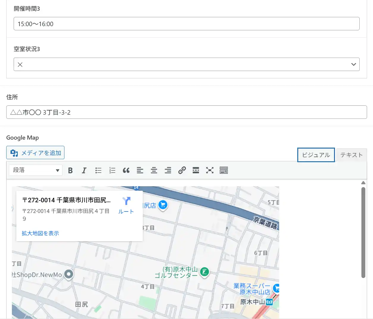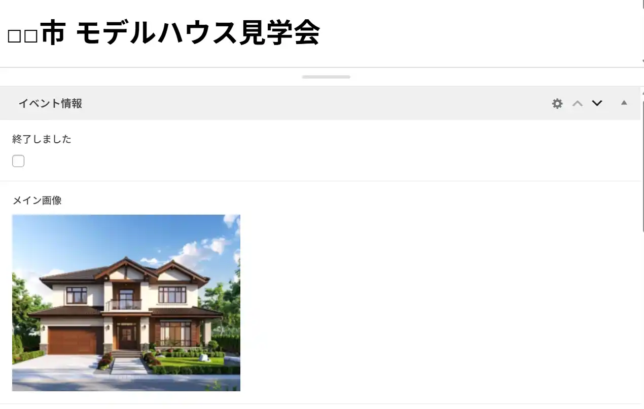 イベント名・日付・場所・時間・内容・画像など、あらかじめ入力欄を用意してあります。