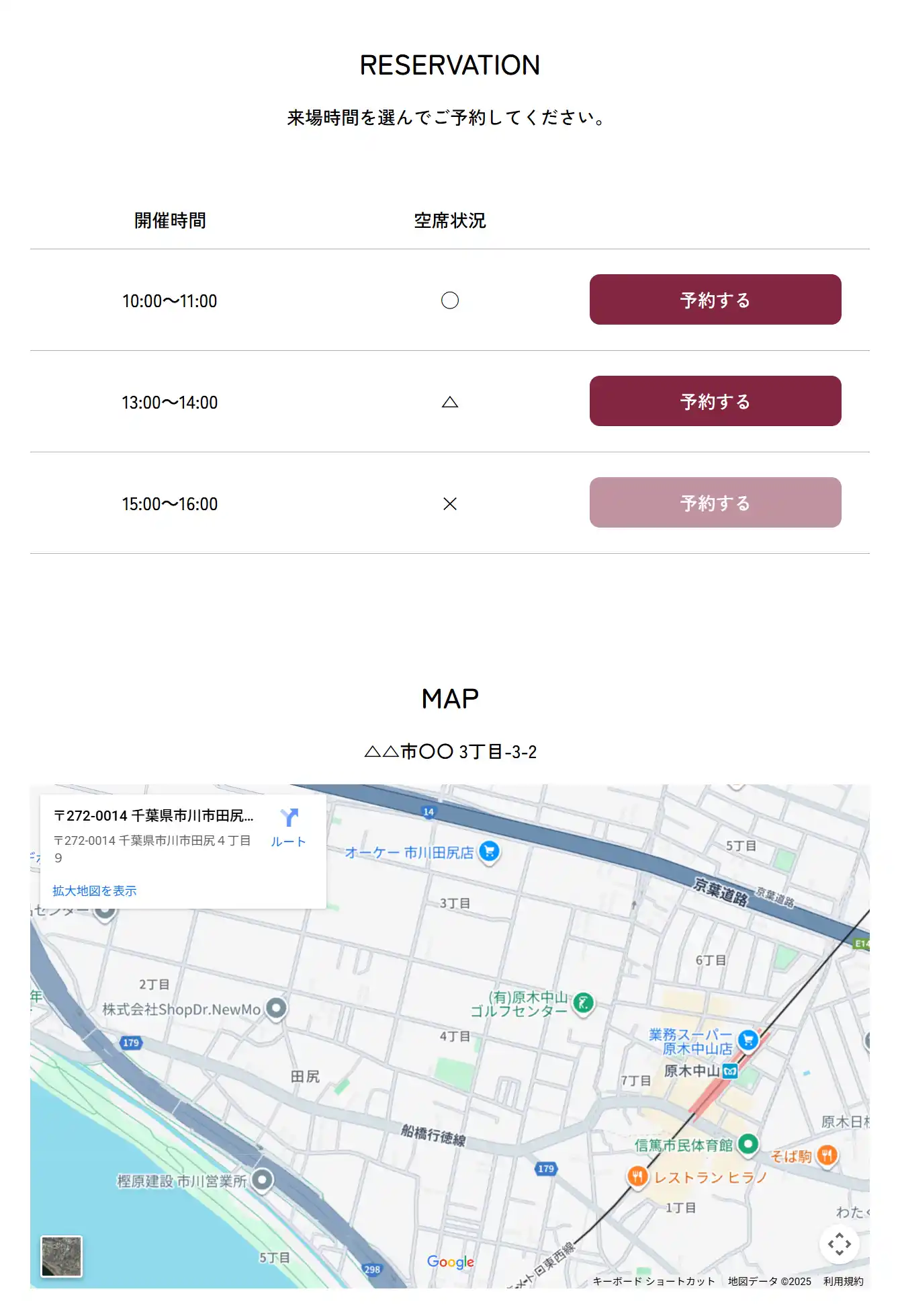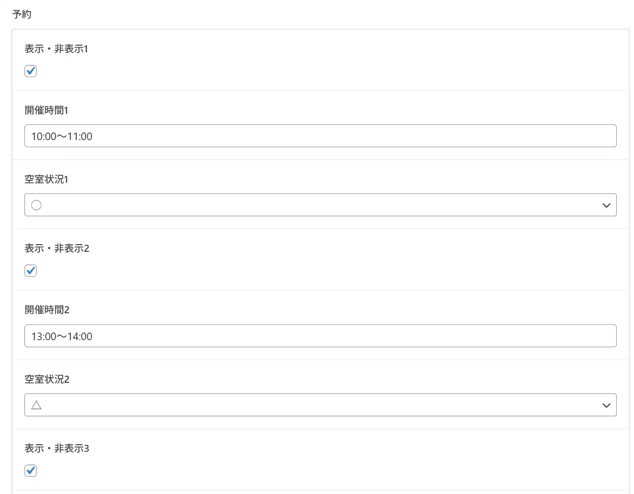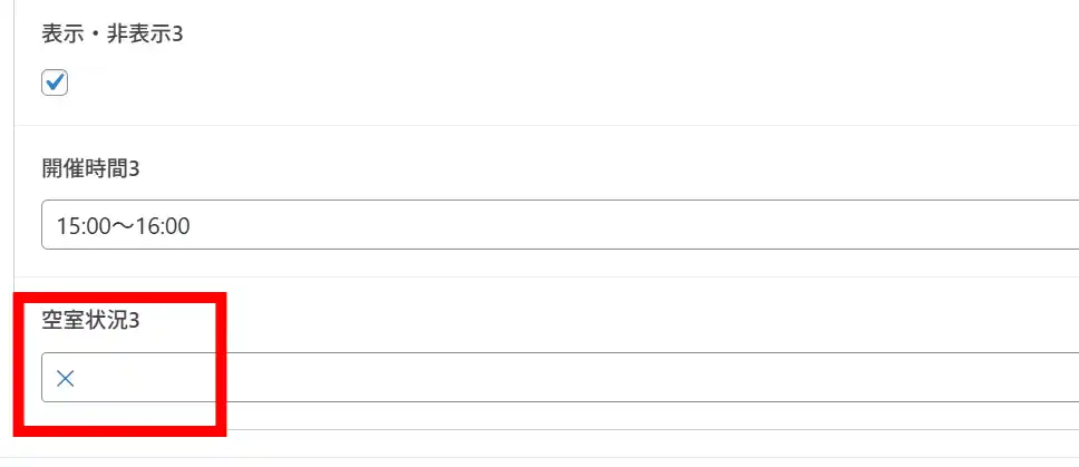 空きがなくなった場合は、「✕」を選ぶだけで予約できない状態に変更できます。