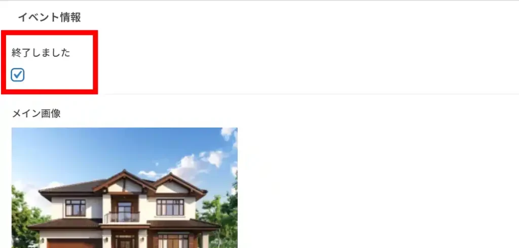 イベントが終わったら、入力画面からチェックを入れるだけで「終了しました」と表示されます。