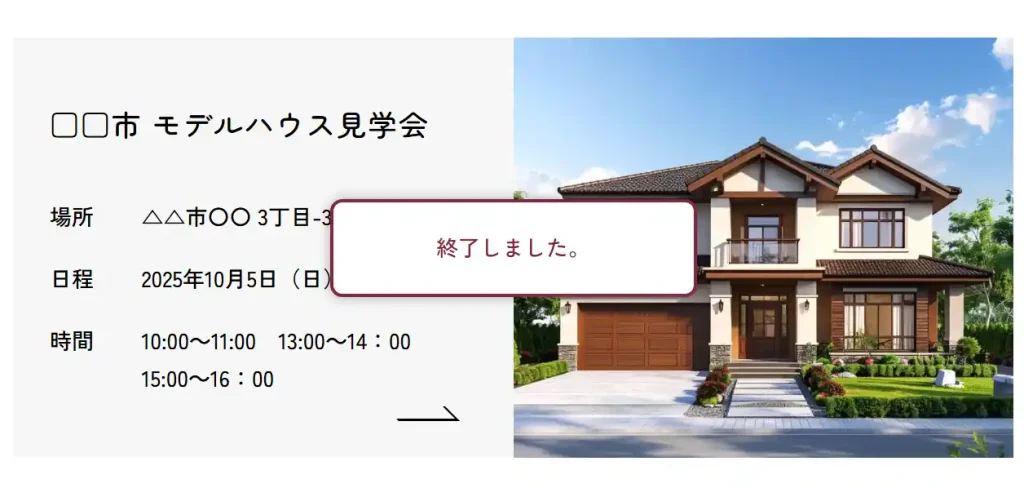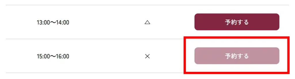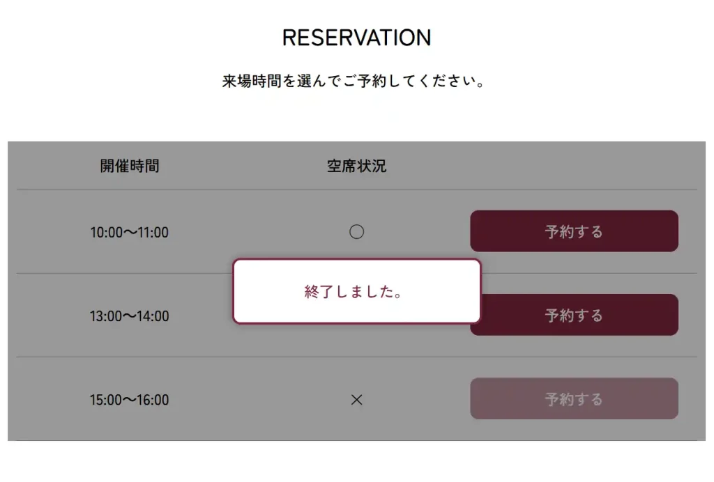 同時に、予約ボタンも「終了しました」と表示され、ボタンがクリックできないように切り替わります。